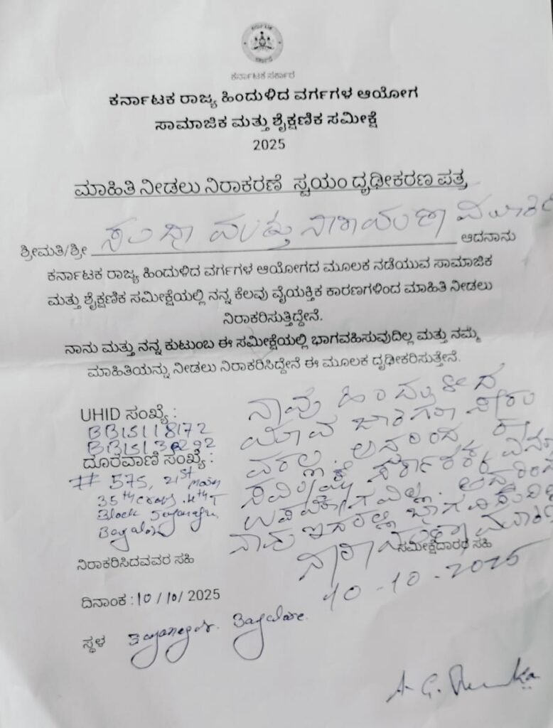 ಬೆಂಗಳೂರು : ರಾಜ್ಯ ಕಾಂಗ್ರೆಸ್ ಸರ್ಕಾರದ ಸಾಮಾಜಿಕ ಮತ್ತು ಶೈಕ್ಷಣಿಕ ಸಮೀಕ್ಷೆಯಿಂದ ಇನ್ಫೋಸಿಸ್ ಮುಖ್ಯಸ್ಥರು ಹಿಂದೆ ಸರಿದು ಅಚ್ಚರಿ ಮೂಡಿಸಿದ್ದಾರೆ.