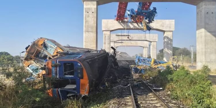 ರೈಲು ಹಳಿಗಳ ಪಕ್ಕದಲ್ಲಿ ಹೈಸ್ಪೀಡ್ ರೈಲ್ವೆ ಯೋಜನೆಯ ಕಾಮಗಾರಿ ನಡೆಯುತ್ತಿತ್ತು. ಈ ವೇಳೆ ಕಾರ್ಯನಿರತವಾಗಿದ್ದ ನಿರ್ಮಾಣ ಹಂತದ ಕ್ರೇನ್ ಹಠಾತ್ತನೆ ಕುಸಿದು, ವೇಗವಾಗಿ ಸಾಗುತ್ತಿದ್ದ ಪ್ಯಾಸೆಂಜರ್ ರೈಲಿನ ಮೇಲೆ ಅಪ್ಪಳಿಸಿದೆ.