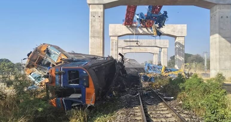 ಬ್ಯಾಂಕಾಕ್: ಥೈಲ್ಯಾಂಡ್ನಲ್ಲಿ ಇಂದು ಬೆಳಗ್ಗೆ ಸಂಭವಿಸಿದ ಭೀಕರ ರೈಲು ಅಪಘಾತವೊಂದರಲ್ಲಿ ಕನಿಷ್ಠ 22 ಜನರು ದಾರುಣವಾಗಿ ಸಾವನ್ನಪ್ಪಿದ್ದು, 30ಕ್ಕೂ ಹೆಚ್ಚು ಪ್ರಯಾಣಿಕರು ಗಾಯಗೊಂಡಿದ್ದಾರೆ. ಹೈಸ್ಪೀಡ್ ರೈಲು ಕಾಮಗಾರಿಗಾಗಿ ಬಳಸಲಾಗುತ್ತಿದ್ದ ಬೃಹತ್ ಕ್ರೇನ್ವೊಂದು ಚಲಿಸುತ್ತಿದ್ದ ರೈಲಿನ ಮೇಲೆ ಕುಸಿದುಬಿದ್ದ ಪರಿಣಾಮ ಈ ದುರಂತ ಸಂಭವಿಸಿದೆ.