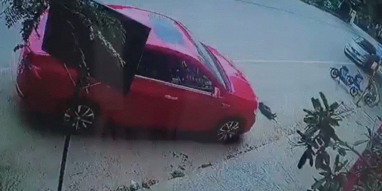 ರಸ್ತೆಯಲ್ಲಿ ಮಲಗಿದ್ದ ಶ್ವಾನದ ಮೇಲೆ ಕಾರು ಹತ್ತಿಸಿರುವ ಅಮಾನವೀಯ ಘಟನೆ ನಡೆದಿದೆ.