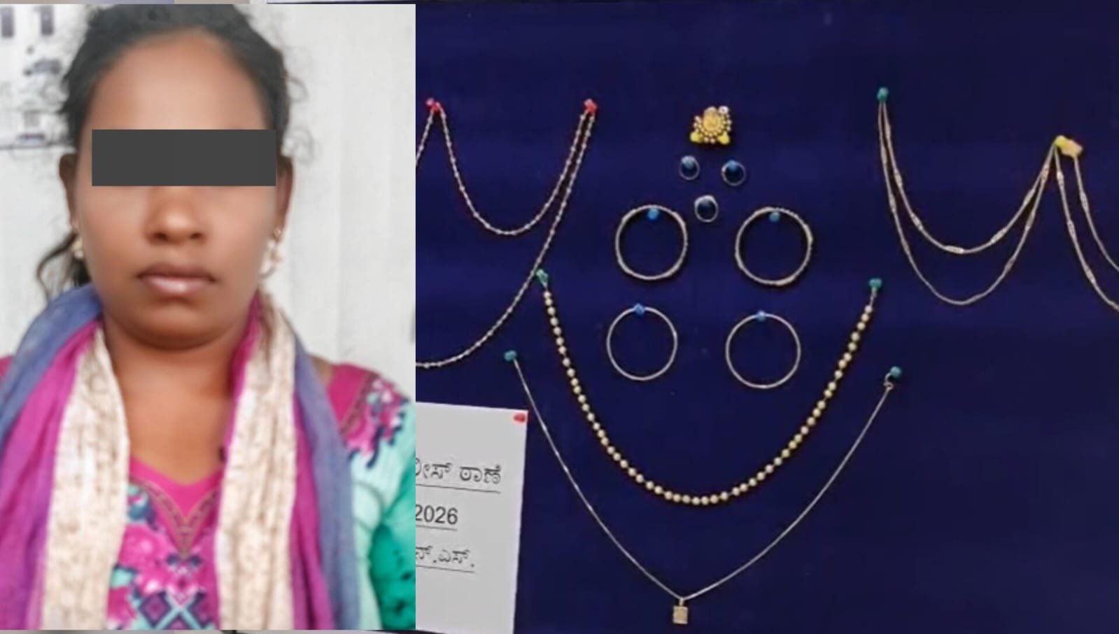 ಸದ್ಯ ಆರೋಪಿಯನ್ನು ಬಂಧಿಸಿರುವ ಪೊಲೀಸರು, ಆಕೆಯಿಂದ ಸುಮಾರು 200 ಗ್ರಾಂ ಚಿನ್ನಾಭರಣವನ್ನು ವಶಪಡಿಸಿಕೊಂಡಿದ್ದಾರೆ. ಪ್ರಕರಣ ಸಂಬಂಧ ಪೊಲೀಸರು ಮುಂದಿನ ತನಿಖೆ ಮುಂದುವರೆಸಿದ್ದಾರೆ.