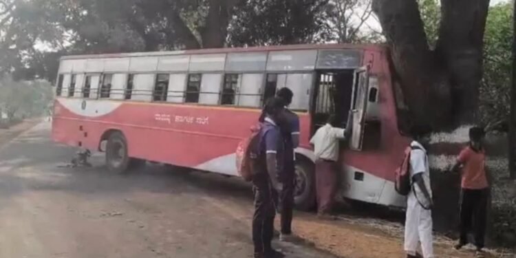 ಬೆಳಗಾವಿ | ಅಡ್ಡಬಂದ ಕಾರನ್ನು ತಪ್ಪಿಸಲು ಹೋಗಿ ನಿಯಂತ್ರಣ ಕಳೆದುಕೊಂಡು ಸರ್ಕಾರಿ ಬಸ್ ಮರಕ್ಕೆ ಡಿಕ್ಕಿಯಾಗಿರುವ ಘಟನೆ ಬೆಳಗಾವಿ ಜಿಲ್ಲೆಯ ಖಾನಾಪುರ ತಾಲೂಕಿನ ನಂದಗಡ ಗ್ರಾಮದಲ್ಲಿ ನಡೆದಿದೆ.