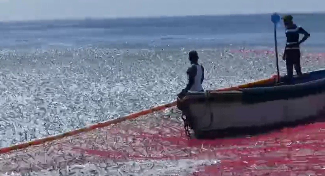 ಕಾರವಾರ : ಸಮುದ್ರ ತೀರ ಭಾಗಕ್ಕೆ ಲಕ್ಷಾಂತರ ಮೀನುಗಳು ಬಂದಿದ್ದು, ಮೀನುಗಾರರಿಗೆ ಭರ್ಜರಿ ಬೇಟೆ ಸಿಕ್ಕಿದೆ. ಹಲವು ತಿಂಗಳ ಹವಾಮಾನ ಬದಲಾವಣೆಯಿಂದ ಸಂಪೂರ್ಣ ನೆಲ ಕಚ್ಚಿದ್ದ ಮೀನುಗಾರಿಕೆ ಇನ್ನೇನು ಮತ್ತೆ ಪ್ರಾರಂಭವಾಗುತ್ತಿರುವ ಬೆನ್ನಲ್ಲೇ ಅರಬ್ಬಿ ಸಮುದ್ರದಲ್ಲಿ ಮೀನುಗಾರರಿಗೆ ಭರ್ಜರಿ ಮತ್ಸ್ಯ ಬೇಟೆಯಾಗುತ್ತಿದೆ.