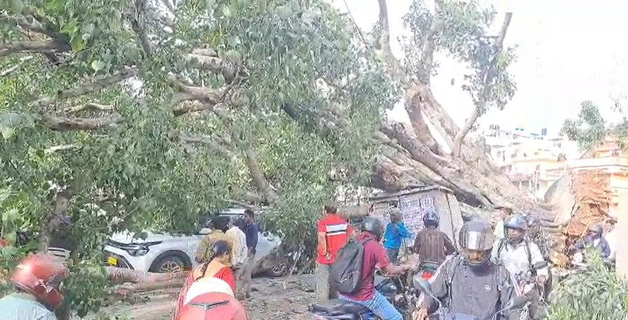 ಘಟನೆಯಲ್ಲಿ ಎರಡು ಕಾರು ಹಾಗೂ ಎರಡು ಬೈಕ್ ಗಳಿಗೆ ಹಾನಿಯಾಗಿವೆ. ಅದೃಷ್ಟವಶಾತ್ ಯಾವುದೇ ಪ್ರಾಣಾಪಾಯ ಸಂಭವಿಸಿಲ್ಲ. ಮರ ಬಿದ್ದ ಪರಿಣಾಮ ವಿದ್ಯುತ್ ಕಂಬಗಳು ನೆಲಕ್ಕೆ ಬಾಗಿವೆ. ಮರ ಬಿದ್ದಿದ್ದರಿಂದಾಗಿ ದೇವಸ್ಥಾನ, ಪೆಟ್ಟಿಗೆ ಅಂಗಡಿಗೂ ಹಾನಿಯಾಗಿದೆ. ಪರಿಣಾಮ ಸುತ್ತಲೂ ಟ್ರಾಫಿಕ್ ಜಾಮ್ ಉಂಟಾಗಿದೆ. ಸ್ಥಳಕ್ಕೆ ಬಿಬಿಎಂಪಿ ಸಿಬ್ಬಂದಿ ಆಗಮಿಸಿದ್ದು, ಮರ ತೆರವು ಕಾರ್ಯಾಚರಣೆ ನಡೆಸುತ್ತಿದ್ದಾರೆ.