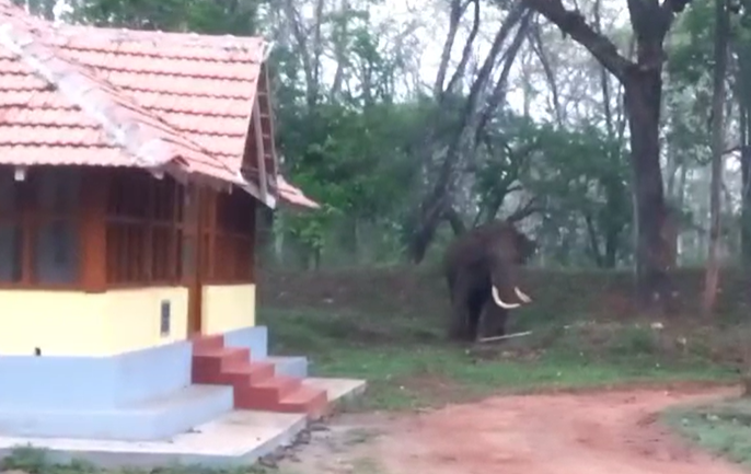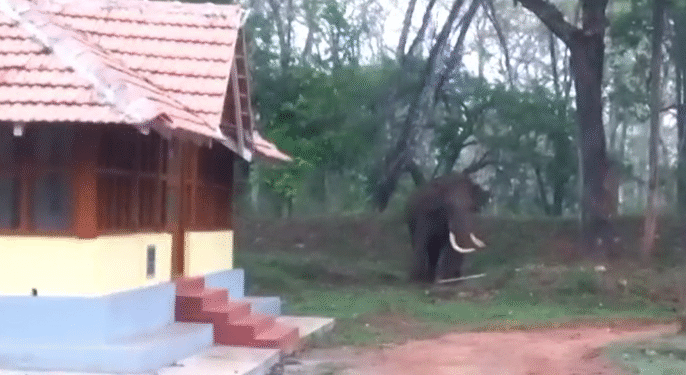 ಚಿಕ್ಕಮಗಳೂರಿನಲ್ಲಿ ಬ್ರಿಟಿಷರ ಕಾಲದ ಪ್ರವಾಸಿ ಮಂದಿರ ಮುಂಭಾಗ ಒಂಟಿ ಸಲಗ