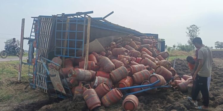 ಗದಗದಲ್ಲಿ ಗ್ಯಾಸ್ ಸಿಲಿಂಡರ್ ಸಾಗಿಸುತ್ತಿದ್ದ ಲಾರಿ ಪಲ್ಟಿ!
