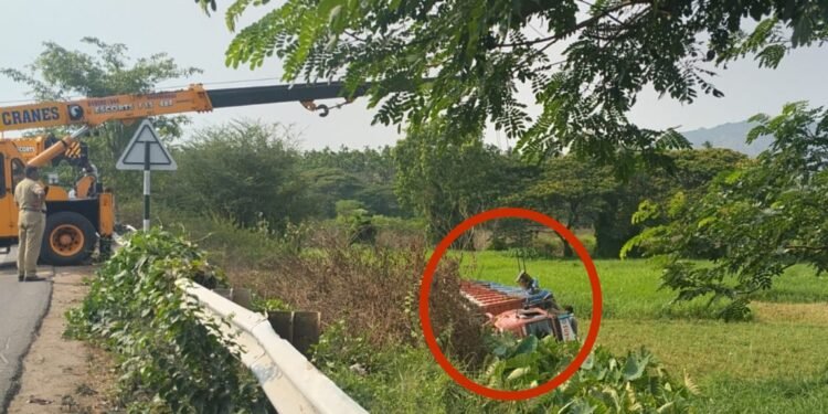 ಮೈಸೂರು : ನಿಯಂತ್ರಣ ತಪ್ಪಿದ ಲಾರಿ ಗದ್ದೆಗೆ ನುಗ್ಗಿ ಪಲ್ಟಿಯಾಗಿರುವ ಘಟನೆ ಮೈಸೂರಿನ ಮಂಡಕಳ್ಳಿ ಗ್ರಾಮದ ಬಳಿ ನಡೆದಿದೆ. ಮಹಾರಾಷ್ಟ್ರದಿಂದ ಕೇರಳ ಕಡೆ ಸಾಗುತ್ತಿದ್ದ ಲಾರಿ, ಅತಿಯಾದ ವೇಗದ ಪರಿಣಾಮ ಚಾಲಕನ ನಿಯಂತ್ರಣ ತಪ್ಪಿ ರಸ್ತೆ ಪಕ್ಕದ ಗದ್ದೆ ಪ್ರದೇಶಕ್ಕೆ ಉರುಳಿದೆ.
