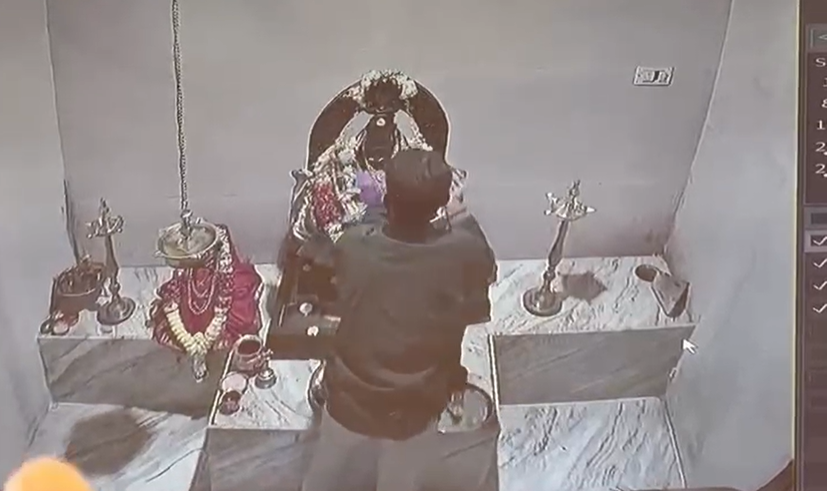 ಖದೀಮನು ಕಬ್ಬಿಣದ ರಾಡ್ ಬಳಸಿ ದೇವಸ್ಥಾನದ ಬೀಗ ಮುರಿದು ಗರ್ಭಗುಡಿಗೆ ನುಗ್ಗಿದ್ದಾನೆ. ಬಳಿಕ ದೇವಿಯ ವಿಗ್ರಹದ ಮೇಲಿದ್ದ ಚಿನ್ನಾಭರಣಗಳನ್ನು ಕದ್ದುಕೊಂಡು ಪರಾರಿಯಾಗಿದ್ದಾನೆ.