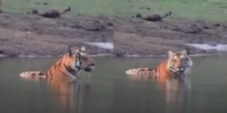 ಬಿಸಿಲಿನ ಬೇಗೆಗೆ ಕಬಿನಿ ನೀರಲ್ಲಿ ವಿಶ್ರಮಿಸಿದ ಹುಲಿ