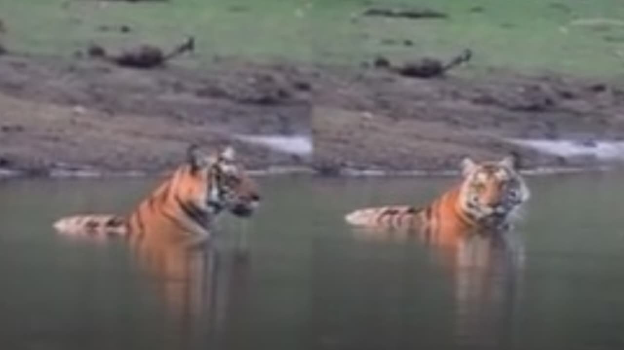ಸಾಮಾನ್ಯವಾಗಿ ಹುಲಿಗಳು ನೀರಿನಲ್ಲಿ ಈಜುವುದು ಅಥವಾ ನೀರು ಕುಡಿಯುವುದು ಸಹಜ. ಆದರೆ, ಬಿಸಿಲಿನ ತಾಪಕ್ಕೆ ಈ ರೀತಿ ಆರಾಮವಾಗಿ ನೀರಿನಲ್ಲಿ ಕುಳಿತು ವಿಶ್ರಮಿಸುತ್ತಿರುವ ದೃಶ್ಯ ಅಪರೂಪದ್ದಾಗಿದೆ. ಕಬಿನಿಯ ನೈಸರ್ಗಿಕ ಸೌಂದರ್ಯದ ನಡುವೆ ಹುಲಿಯ ಈ ‘ಕೂಲ್’ ಅವತಾರ ಈಗ ಸೋಷಿಯಲ್ ಮೀಡಿಯಾದಲ್ಲಿ ಎಲ್ಲೆಡೆ ಹರಿದಾಡುತ್ತಿದೆ.