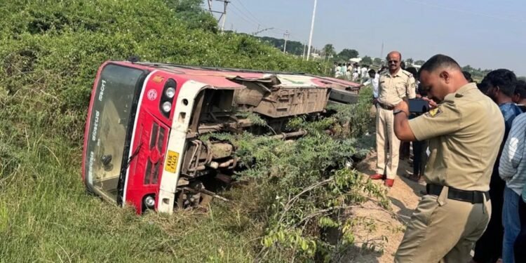 ಬಸ್ನಲ್ಲಿದ್ದ ಸುಮಾರು 40ಕ್ಕೂ ಹೆಚ್ಚು ಪ್ರಯಾಣಿಕರು ಚಾಲಕನ ಸಮಯಪ್ರಜ್ಞೆಯಿಂದಾಗಿ ಪ್ರಾಣಾಪಾಯದಿಂದ ಪಾರಾಗಿದ್ದಾರೆ. ವಿಜಯಪುರ ಜಿಲ್ಲೆಯ ನಾಲತವಾಡದಿಂದ ಲಿಂಗಸಗೂರಿಗೆ ಬರುತ್ತಿದ್ದ ಕಲ್ಯಾಣ ಕರ್ನಾಟಕ ರಸ್ತೆ ಸಾರಿಗೆ ಸಂಸ್ಥೆಗೆ (KKRTC) ಸೇರಿದ ಬಸ್ ಸುಣಕಲ್ ಗ್ರಾಮದ ಬಳಿ ಬರುತ್ತಿದ್ದಂತೆ ತಾಂತ್ರಿಕ ದೋಷದಿಂದಾಗಿ ಏಕಾಏಕಿ ಸ್ಟೇರಿಂಗ್ ಕಟ್ ಆಗಿದ್ದು, ತಕ್ಷಣ ನಿಯಂತ್ರಣ ತಪ್ಪಿದ ಬಸ್ ರಸ್ತೆ ಪಕ್ಕದ ಹಳ್ಳಕ್ಕೆ ಉರುಳಿ ಬಿದ್ದಿದೆ.