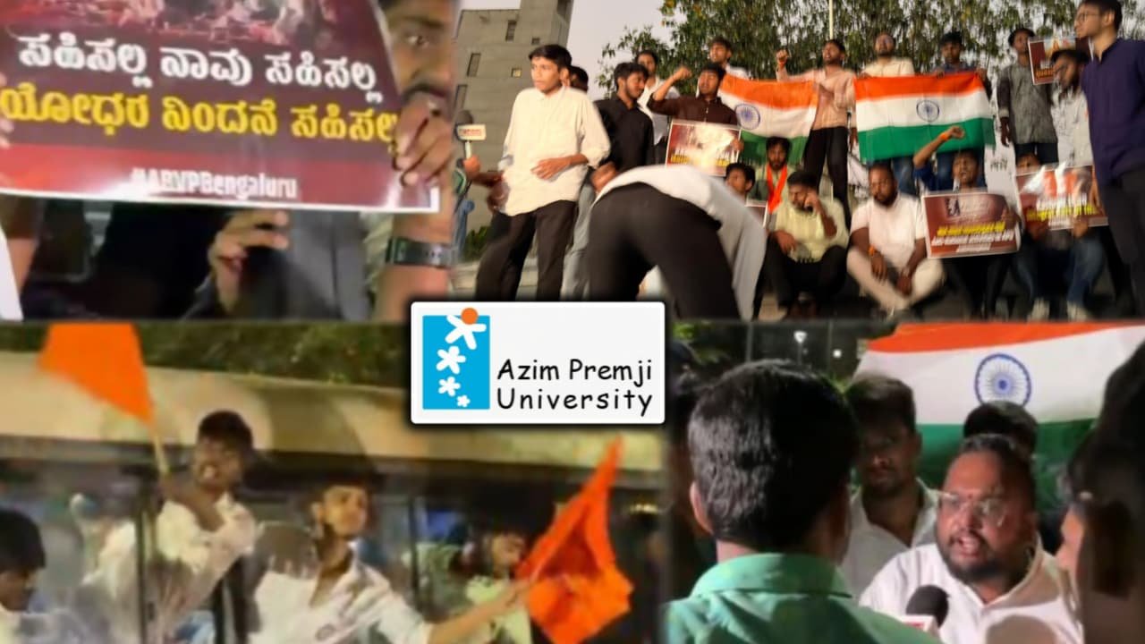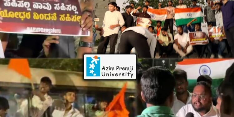 ಬೆಂಗಳೂರು : ನಗರದ ಸರ್ಜಾಪುರದಲ್ಲಿನ ಪ್ರತಿಷ್ಠಿತ ಅಜೀಂ ಪ್ರೇಮ್ಜಿ ವಿಶ್ವವಿದ್ಯಾಲಯದಲ್ಲಿ ದೇಶ ವಿರೋಧಿ ಚಟುವಟಿಕೆಗಳು ನಡೆಯುತ್ತಿವೆ ಎಂದು ಆರೋಪಿಸಿ, ವಿವಿಯ ಮಾನ್ಯತೆಯನ್ನು ಕೂಡಲೇ ರದ್ದು ಮಾಡಬೇಕು ಎಂದು ಆಗ್ರಹಿಸಿ ಅಖಿಲ ಭಾರತ ವಿದ್ಯಾರ್ಥಿ ಪರಿಷತ್ (ಎಬಿವಿಪಿ) ಕಾರ್ಯಕರ್ತರು ಮಂಗಳವಾರ ಸಂಜೆಯಿಂದ ಪ್ರತಿಭಟನೆ ನಡೆಸಿದ್ದಾರೆ.