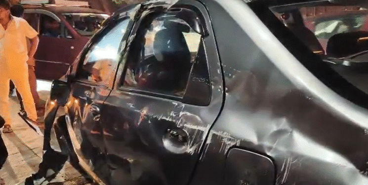 ಬೆಂಗಳೂರು: ಬೆಂಗಳೂರಿನ ನಾಗರಬಾವಿಯಲ್ಲಿ ವಾಹನ ಚಲಾಯಿಸುತ್ತಿದ್ದ ವೇಳೆ ರೇಸಿಂಗ್ ಮಾದರಿಯಲ್ಲಿ ಚಮಕ್ ತೋರಿಸಲು ಯತ್ನಿಸಿದ ಪರಿಣಾಮ ಎರಡು ಕಾರುಗಳು ಪರಸ್ಪರ ಡಿಕ್ಕಿಯಾದವು ಎಂಬ ಶಂಕೆ ವ್ಯಕ್ತವಾಗಿದೆ. ಡಿಕ್ಕಿಯ ತೀವ್ರತೆಗೆ ಎರಡೂ ಕಾರುಗಳು ಜಖಂಗೊಂಡಿವೆ.