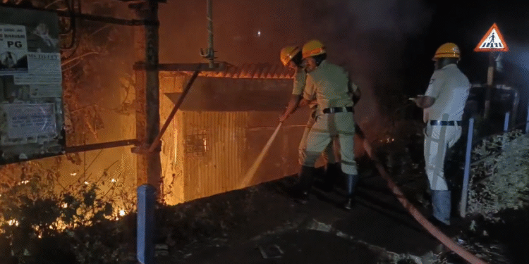 Tags: Accidental fire in garbage dumpsterDamage to adjacent can shopKarnataka News beat