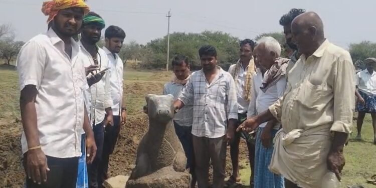 ಗ್ರಾಮದ ಬಳಿ ಇರೋ ಬಾಳೆ ಕೆರೆಯಲ್ಲಿ ಹೂಳು ತೆಗೆಯುತ್ತಿದ್ದ ವೇಳೆ 3 ಅಡಿ ಎತ್ತರದ ಬಸವಣ್ಣ ಮೂರ್ತಿ ಪತ್ತೆಯಾಗಿದ್ದು, ಗ್ರಾಮದ ಜನರು ಬಸವಣ್ಣನ ಮೂರ್ತಿಗೆ ಪೂಜೆ ಸಲ್ಲಿಸಿದ್ದಾರೆ.