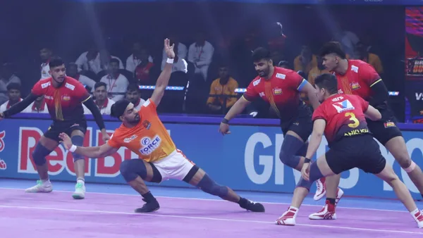 ಎಸ್ ಡಿಎಟಿ ವಿವಿದ್ದೋದೇಶ ಒಳಾಂಗಣ ಕ್ರೀಡಾಂಗಣದಲ್ಲಿ ಗುರುವಾರ ನಡೆದ ಮೊದಲ ಹಣಾಹಣಿಯಲ್ಲಿ ಬೆಂಗಳೂರು ಬುಲ್ಸ್ ಪರಾಭವಗೊಂಡಿತು. ಇದಕ್ಕೂ ಮುನ್ನ ಪಂದ್ಯದ ಪೂರ್ಣಾವಧಿಯಲ್ಲಿ ಸಮಬಲದ ಹೋರಾಟ ನೀಡಿದ ಕಾರಣ ಬೆಂಗಳೂರು ಬುಲ್ಸ್ ಮತ್ತು ಪುಣೇರಿ ಪಲ್ಟನ್ ತಂಡಗಳ ಹೈವೋಲ್ಟೇಜ್ ಪಂದ್ಯ 29-29ರಲ್ಲಿ ಸಮಬಲಗೊಂಡಿತು. ಹೀಗಾಗಿ ಪಂದ್ಯ ಟೈಬ್ರೇಕರ್ ಗೆ ಹೊರಳಿತು.