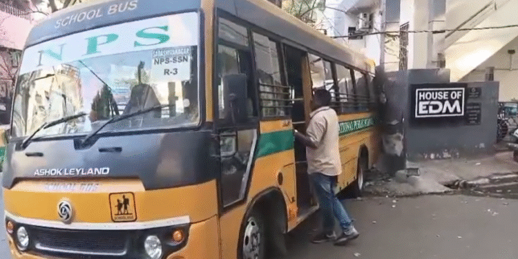 ಮಕ್ಕಳನ್ನು ಪಿಕ್ ಮಾಡುತ್ತಿದ್ದ ನ್ಯಾಶನಲ್‌ ಪಬ್ಲಿಕ್‌ ಸ್ಕೂಲ್‌ಗೆ ಸೇರಿದ ಶಾಲಾ ಬಸ್ ಇದಾಗಿದ್ದು, ಏಕಾಏಕಿ ಬ್ರೇಕ್ ಕೈಕೊಟ್ಟ ಕಾರಣ ಚಾಲಕನ ನಿಯಂತ್ರಣ ತಪ್ಪಿ ಈ ದುರ್ಘಟನೆ ಸಂಭವಿಸಿದೆ ಎನ್ನಲಾಗಿದೆ.