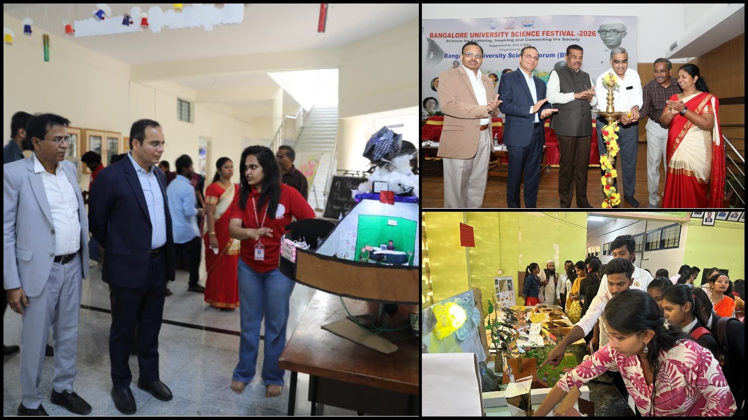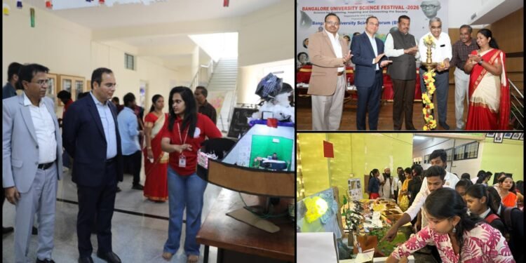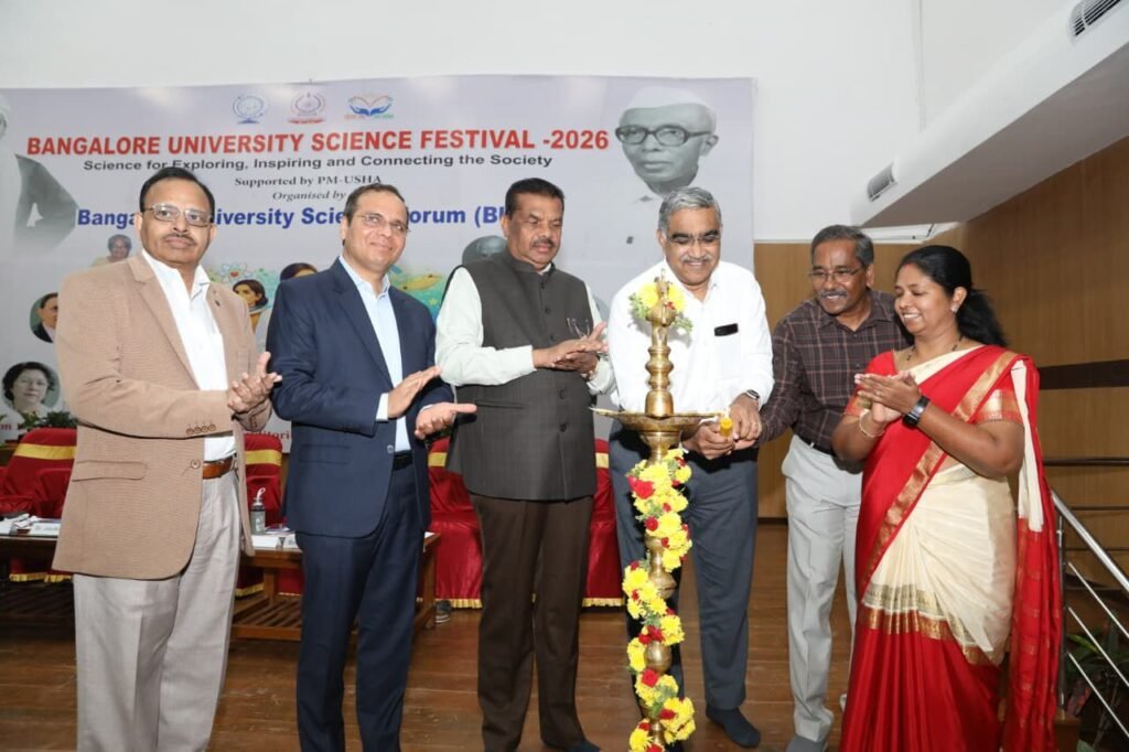 ಹೌದು.. ಬೆಂಗಳೂರು ವಿಶ್ವವಿದ್ಯಾಲಯದ ಜ್ಞಾನಭಾರತಿ ಆವರಣದಲ್ಲಿ ಬೆಂಗಳೂರು ವಿಶ್ವವಿದ್ಯಾಲಯ ಸೈನ್ಸ್ ಫೋರಮ್ (ಬಿಯುಎಸ್ಎಫ್) ಹಾಗೂ ಪಿಎಂ ಉಷಾ ಸಹಯೋಗದೊಂದಿಗೆ ಆಯೋಜಿಸಿದ್ದ ಬೆಂಗಳೂರು ವಿಶ್ವವಿದ್ಯಾಲಯ ವಿಜ್ಞಾನ ಉತ್ಸವ -2026 ಉದ್ಘಾಟಿಸಲಾಯಿತು.