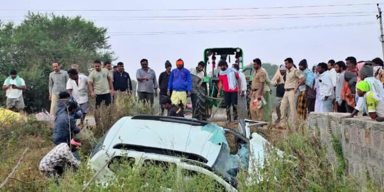 ಬಳ್ಳಾರಿ : ರಸ್ತೆ ಬದಿಯ ಕಿರು ಸೇತುವೆಗೆ ಕಾರು ಡಿಕ್ಕಿ ಹೊಡೆದ ಪರಿಣಾಮ ಮೂವರು ಸ್ಥಳದಲ್ಲೇ ಮೃತಪಟ್ಟು, ಇಬ್ಬರು ಗಂಭೀರವಾಗಿ ಗಾಯಗೊಂಡಿರುವ ಘಟನೆ ಸಿರುಗುಪ್ಪ ತಾಲೂಕಿನ ತೆಕ್ಕಲಕೋಟೆ ಪಟ್ಟಣದ ದೇವಿನಗರದ ರಾಷ್ಟ್ರೀಯ ಹೆದ್ದಾರಿ 150ರಲ್ಲಿ ಬುಧವಾರ (ಇಂದು) ಮುಂಜಾನೆ 5 ಗಂಟೆ ಸುಮಾರಿಗೆ ಸಂಭವಿಸಿದೆ.