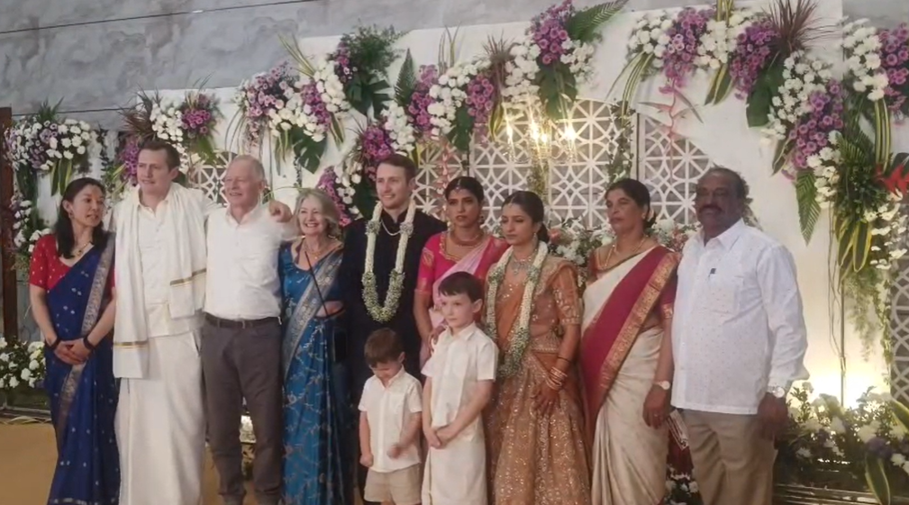 ಬೇಲೂರು ತಾಲೂಕಿನ ಇಬ್ಬೀಡು ಗ್ರಾಮದ ಯುವತಿಯ ವದು ಹೇಮಶ್ರೀ ಇಂಗ್ಲೆಂಡಿನ ವರ ಜಾಯ್ ಹಾಸನ ಜಿಲ್ಲೆ ಬೇಲೂರಿನಲ್ಲಿ ಹಿಂದೂ ಸಂಪ್ರದಾಯದಂತೆ ಸಪ್ತಪದಿ ತುಳಿದ್ದಿದ್ದಾರೆ.