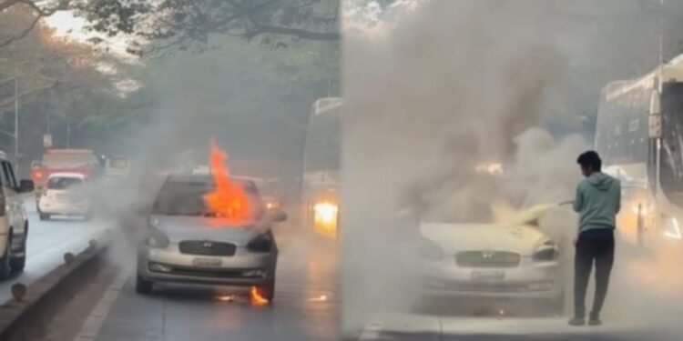 ಬೆಂಗಳೂರು: ಬೆಳ್ಳಂಬೆಳಗ್ಗೆ ಕಾರೊಂದು ನಡು ರಸ್ತೆಯಲ್ಲಿಯೇ ಹೊತ್ತಿ ಉರಿದ ಘಟನೆ ನಗರದ ಯಶವಂತಪುರದ ಬಳಿ ಬೆಳಿಗ್ಗೆ 7 ಘಂಟೆಯ ಸುಮಾರಿಗೆ ನಡೆದಿದೆ.