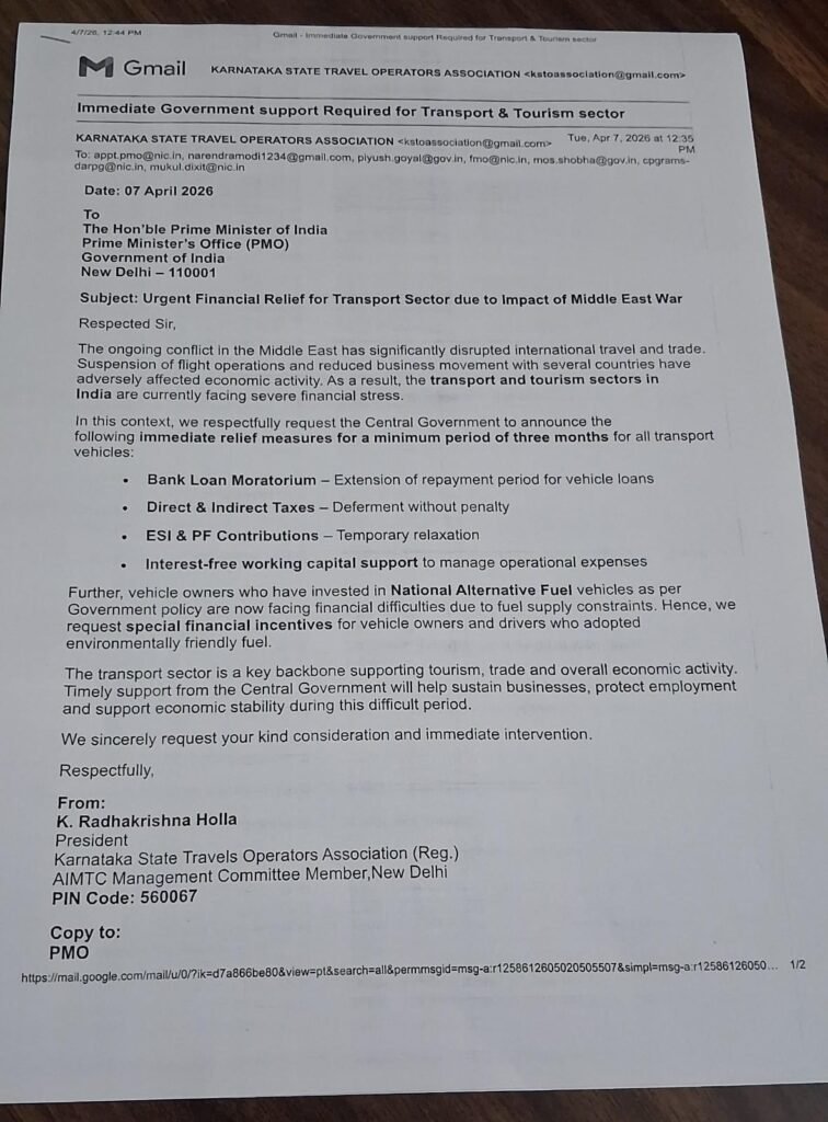 ಇದರಿಂದ ಪ್ರವಾಸೋದ್ಯಮ ಹಾಗೂ ಟೂರ್ಸ್ & ಟ್ರಾವೆಲ್ಸ್ ಉದ್ಯಮವು ಸಾಕಷ್ಟು ನಷ್ಟ ಅನುಭವಿಸುತ್ತಿದೆ. ವಾಹನಗಳು ನಿರುದ್ಯೋಗವಾಗಿದ್ದು, ಆರ್ಥಿಕ ಒತ್ತಡ ಹೆಚ್ಚಾಗಿದೆ. ಈ ಹಿನ್ನೆಲೆಯಲ್ಲಿ ಕರ್ನಾಟಕ ರಾಜ್ಯ ಟ್ರಾವೆಲ್ಸ್ ಆಪರೇಟರ್ಸ್ ಅಸೋಸಿಯೇಷನ್ ಪ್ರಧಾನಿ ನರೇಂದ್ರ ಮೋದಿ ಅವರಿಗೆ ಪತ್ರ ಬರೆದು ನೆರವು ಕೋರಿ ಮನವಿ ಮಾಡಿದೆ.