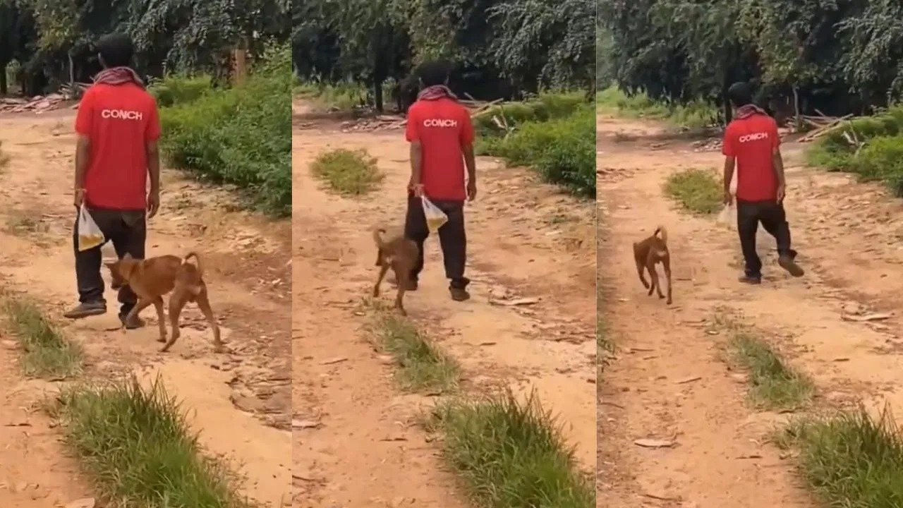 ವ್ಯಕ್ತಿಯೊಬ್ಬನು ನಾಯಿಗೂ ಎಣ್ಣೆ ಕುಡಿಸಿದ್ದಾನೆ. ವ್ಯಕ್ತಿಯ ಕೈಯಲ್ಲಿನ ಎಣ್ಣೆ ತುಂಬಿದ ಕವರ್ನ್ನು ಕಾಣಬಹುದು. ಎಣ್ಣೆಯ ಮತ್ತಿನಲ್ಲಿ ವ್ಯಕ್ತಿ ಹಾಗೂ ನಾಯಿಯು ತೂರಾಡುತ್ತಾ ನಡೆದುಕೊಂಡು ಹೋಗುತ್ತಿರುವುದನ್ನು ವಿಡಿಯೋದಲ್ಲಿ ಕಂಡುಬಂದಿದೆ.