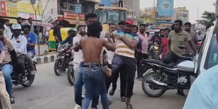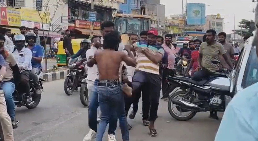 ಕ್ಷುಲ್ಲಕ ಕಾರಣಕ್ಕೆ ಬೈಕ್ ಸವಾರರು ರಸ್ತೆ ಮಧ್ಯೆ ಫೈಟ್ ನಡೆಸಿದ್ದಾರೆ. ಆನೇಕಲ್ ತಾಲ್ಲೂಕಿನ ಚಂದಾಪುರ ಕೆಇಬಿ ಬಳಿ ಈ ಘಟನೆ ನಡೆದಿದೆ. ಬೈಕ್ ಟಚ್ ಆಗಿದ್ದಕ್ಕೆ ಬೈಕ್ ಸವಾರರಿಬ್ಬರ ಮಧ್ಯೆ ಕಿರಿಕ್ ನಡೆದಿದೆ. ಮಾತಿಗೆ ಮಾತು ಬೆಳೆದು ಜಗಳ ವಿಕೋಪಕ್ಕೆ ಹೋಗಿ ನಡು ರಸ್ತೆಯಲ್ಲೇ ಸವಾರರಿಬ್ಬರು ಕೈ ಕೈ ಮಿಲಾಯಿಸಿದ್ದಾರೆ. ಅವಾಚ್ಯ ಶಬ್ದಗಳಿಂದ ನಿಂದಿಸಿ ಪರಸ್ಪರ ಬಡಿದಾಡಿಕೊಂಡಿದ್ದಾರೆ.