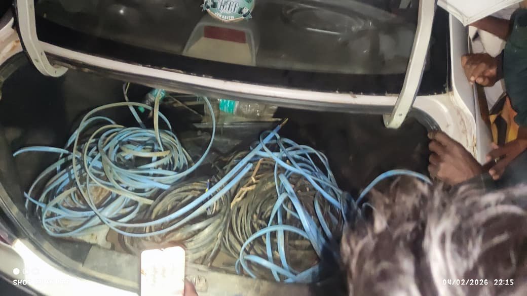 ರಾತ್ರಿ ವೇಳೆ ಕಾರಿನಲ್ಲಿ ಬಂದು ಕೇಬಲ್ಗಳನ್ನು ಕದಿದು ಎಸ್ಕೇಪ್ ಆಗಿದ್ದ ಕಳ್ಳರ ಬಗ್ಗೆ ಸ್ಥಳೀಯರು ಗಂಭೀರ ಆಕ್ರೋಶ ವ್ಯಕ್ತಪಡಿಸುತ್ತಿದ್ದಾರೆ. ಗ್ರಾಮಸ್ಥರು ಕೇಬಲ್ ಕಳ್ಳರನ್ನ ಹಿಡಿದು ತೀರ್ಪು ನೀಡುವಂತೆ ಪೊಲೀಸ್ ಅಧಿಕಾರಿಗಳ ಮೇಲೆ ಒತ್ತಾಯಿಸಿದ್ದಾರೆ.