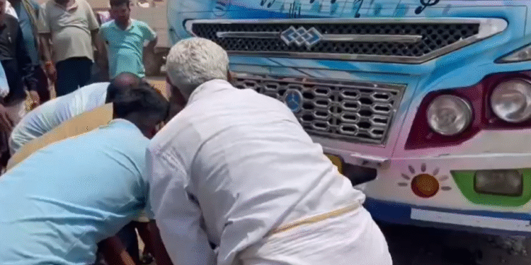 ಶಿರಾ ತಾಲೂಕಿನ ಮದಲೂರು ಗ್ರಾಮದಲ್ಲಿ ಈ ಘಟನೆ ನಡೆದಿದ್ದು, ಅಗಳಿಯಿಂದ ಶಿರಾಗೆ ಬರುತ್ತಿದ್ದ ಖಾಸಗಿ ಬಸ್ ಚಾಲಕನ ಎಡವಟ್ಟಿನಿಂದ ಬೈಕ್ಗೆ ಡಿಕ್ಕಿ ಹೊಡೆದಿದೆ. ಡಿಕ್ಕಿಯ ಪರಿಣಾಮ ಬೈಕ್ ಬಸ್ ಕೆಳಗೆ ನುಗ್ಗಿದರೂ, ಸವಾರರು ಪ್ರಾಣಾಪಾಯದಿಂದ ಪಾರಾಗಿದ್ದಾರೆ.
