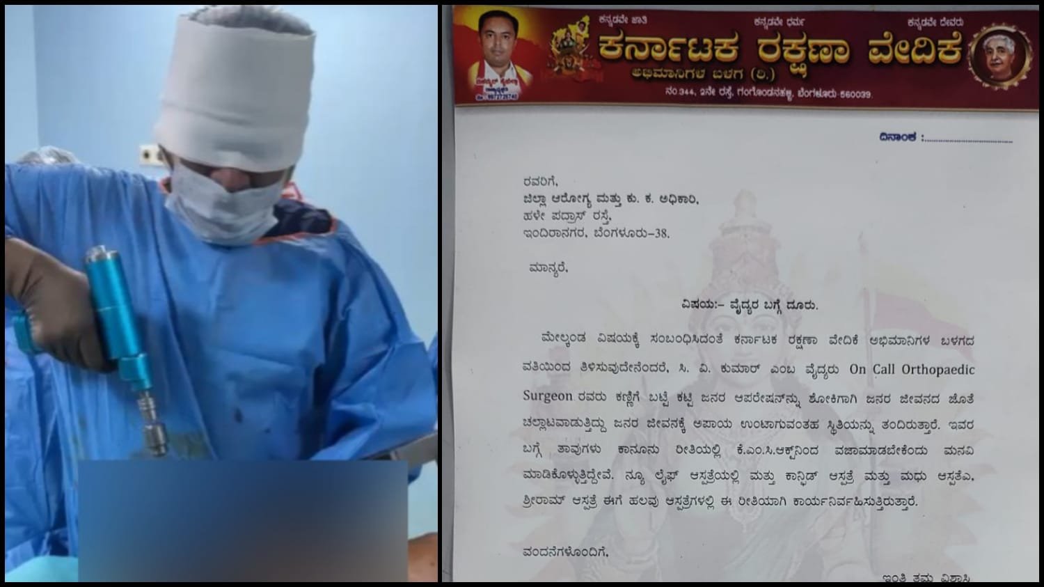 ಅನ್ನಪೂರ್ಣೇಶ್ವರಿ, ನಾಗರಬಾವಿ ಖಾಸಗಿ ಆಸ್ಪತ್ರೆ ಕ್ಲಿನಿಕ್ಗಳಲ್ಲಿ ಕಾರ್ಯ ನಿರ್ವಹಣೆ ಮಾಡುತ್ತಿರುವ ಸಿ.ವಿ. ಕುಮಾರ್ ಎಂಬ ವೈದ್ಯನ ವಿರುದ್ಧ ದೂರು ದಾಖಲಾಗಿದ್ದು, ಈತ ಗಾಯಳುವಿಗೆ ವಿಕಾರವಾಗಿ ಶಸ್ತ್ರ ಚಿಕಿತ್ಸೆ ಮಾಡಿದ್ದಾನೆಂದು ದೂರಿನಲ್ಲಿ ಉಲ್ಲೇಖಿಸಲಾಗಿದೆ. ಈ ಘಟನೆ ಹಲವು ತಿಂಗಳುಗಳ ಹಿಂದೆ ನಡೆದಿದ್ದು, ಈ ಸಂಬಂಧ ಇದೀಗ ಕರ್ನಾಟಕ ರಕ್ಷಣಾ ವೇದಿಕೆ ಅಭಿಮಾನಿಗಳ ಸಂಘ ಜಿಲ್ಲಾ ಆರೋಗ್ಯ ಮತ್ತು ಕುಟುಂಬ ಕಲ್ಯಾಣ ಇಲಾಖೆಯ ಅಧಿಕಾರಿಗೆ ದೂರು ನೀಡಿದೆ.