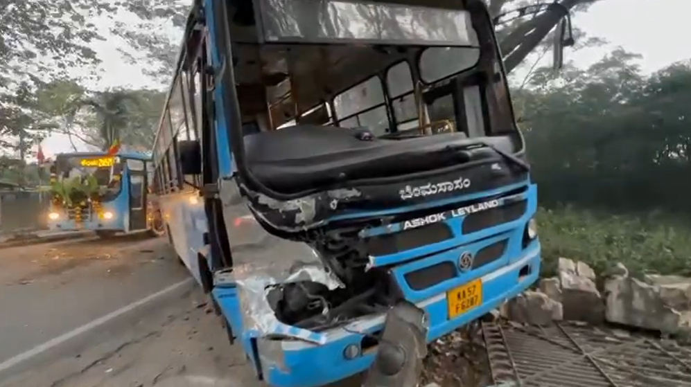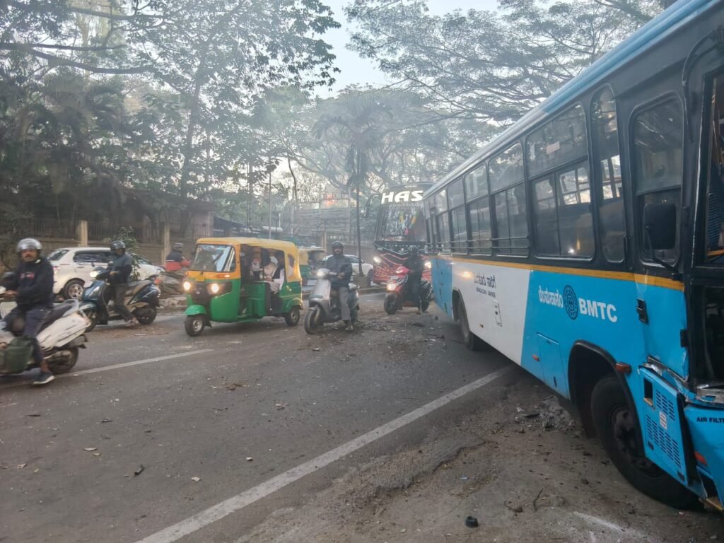 ಮುಂಜಾನೆ ದಟ್ಟವಾದ ಮಂಜು ಕವಿದ ಹಿನ್ನೆಲೆ, ಯಲಹಂಕ‌ ನ್ಯೂಟೌನ್ ನಿಂದ ಮೆಜೆಸ್ಟಿಕ್‌ಗೆ ಬರುತ್ತಿದ್ದ ಬಿಎಂಟಿಸಿ ಬಸ್ ಗಮನಿಸಿದೆ ರಸ್ತೆ ಬದಿ ಕಸ ತುಂಬಿಕೊಳ್ಳುತ್ತಿದ್ದ ಟ್ರ್ಯಾಕ್ಟರ್‌ಗೆ ಡಿಕ್ಕಿ ಹೊಡೆದಿದೆ. ಈ ಘಟನೆಯಲ್ಲಿ ಚಾಲಕನಿಗೆ ಸಣ್ಣಪುಟ್ಟ ಗಾಯವಾಗಿದ್ದು, ಅದೃಷ್ಟವಶಾತ್ ಬಸ್‌ನಲ್ಲಿದ್ದ ಪ್ರಯಾಣಿಕರಿಗೆ ಯಾವುದೆ ಅಪಾಯವಾಗಿಲ್ಲ.