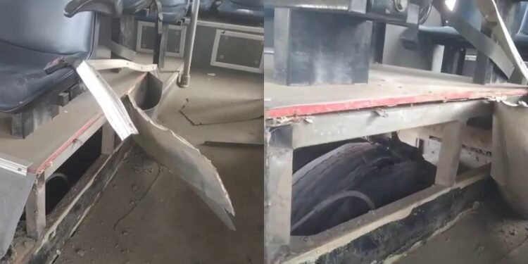 ಬಸ್ ಇಂದು (ಡಿ.28) ಬೆಳಗ್ಗೆ ಅತ್ತಿಬೆಲೆಯಿಂದ ಮೆಜೆಸ್ಟಿಕ್ ಕಡೆ ಹೋರಟಿತ್ತು. ಈ ವೇಳೆ ಬಸ್ನ ಟೈರ್ ಇದ್ದಕ್ಕಿದ್ದಂತೆ ಸ್ಫೋಟಗೊಂಡಿದೆ. ಇದರಿಂದ ಬಸ್ನ ಟೈರ್ ಬಳಿಯ ಸೀಟ್ಗೂ ಹಾನಿಯಾಗಿದೆ. ಅಲ್ಲದೇ ಕೆಳಭಾಗದಲ್ಲಿ ಛಿದ್ರವಾಗಿ ಬಸ್ ತುಂಬ ಧೂಳು ಆವರಿಸಿದೆ.
