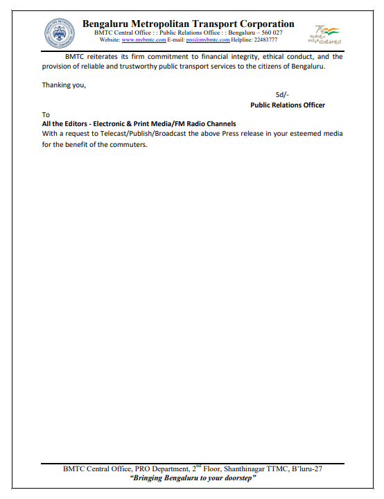 ಡಿಸೆಂಬರ್ ತಿಂಗಳಲ್ಲಿ ನಡೆದ ಆಂತರಿಕ ತನಿಖೆಯಲ್ಲಿ ಈ ದುರ್ಬಳಕೆ ಪ್ರಕರಣ ಪತ್ತೆಯಾಗಿದ್ದು, ಇದರ ಆಧಾರದ ಮೇಲೆ ಬಿಎಂಟಿಸಿ ವ್ಯವಸ್ಥಾಪಕ ನಿರ್ದೇಶಕ ಶಿವಕುಮಾರ್ ಅಮಾನತು ಆದೇಶ ಹೊರಡಿಸಿದ್ದಾರೆ. ಸಾರಿಗೆ ಸಚಿವರ ಸೂಚನೆಯ ಮೇರೆಗೆ ತಕ್ಷಣವೇ ಕ್ರಮ ಕೈಗೊಳ್ಳಲಾಗಿದೆ ಎಂದು ತಿಳಿದುಬಂದಿದೆ.