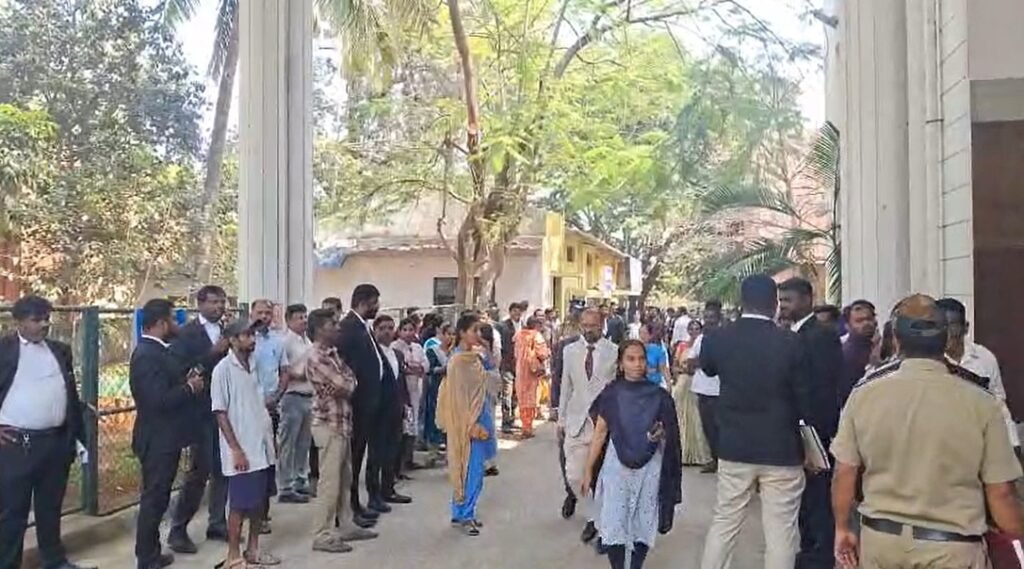 ನ್ಯಾಯಾಲಯದ ಆವರಣದಲ್ಲಿ ಪೊಲೀಸ್ ಸಿಬ್ಬಂದಿಗಳು, ಬಾಂಬ್ ನಿಷ್ಕ್ರಿಯ ದಳದ ತಂಡ ದೌಡಾಯಿಸಿ, ಕಾರು ಪಾರ್ಕಿಂಗ್ ಸೇರಿದಂತೆ ನ್ಯಾಯಾಲಯದ ಆವರಣದಲ್ಲಿ ಪರಿಶೀಲನೆ ನಡೆಸಿದ್ದಾರೆ.