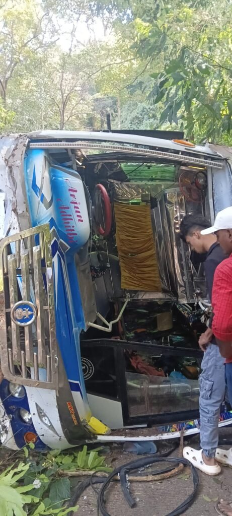 ಹಾಸನ : ವನಗೂರಿನಿಂದ ಕುಕ್ಕೆ ಸುಬ್ರಹ್ಮಣ್ಯಕ್ಕೆ ಹೊರಟಿದ್ದ ಮದುವೆ ದಿಬ್ಬಣದ ಬಸ್ ಹಾಸನ ಜಿಲ್ಲೆ ಸಕಲೇಶಪುರ ತಾಲೂಕಿನ ಬಿಸಿಲೆಘಾಟ್ನಲ್ಲಿ ಚಾಲಕನ ನಿಯಂತ್ರಣ ತಪ್ಪಿ 20 ಅಡಿ ಎತ್ತರದಿಂದ ಪಲ್ಟಿಯಾದ ಪರಿಣಾಮ 22 ಮಂದಿ ಗಾಯಗೊಂಡಿದ್ದಾರೆ. ಈ ಪೈಕಿ ಇಬ್ಬರ ಸ್ಥಿತಿ ಗಂಭೀರವಾಗಿದೆ.