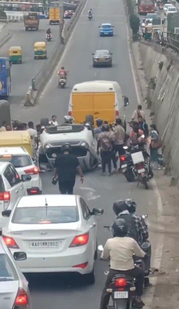 ಬೆಂಗಳೂರು: ಇಲ್ಲಿನ ಯಶವಂತಪುರ ಫ್ಲೈ ಓವರ್ ಬಳಿ ಕಾರು ಪಲ್ಟಿಯಾಗಿರುವ ಘಟನೆ ನಡೆದಿದೆ.