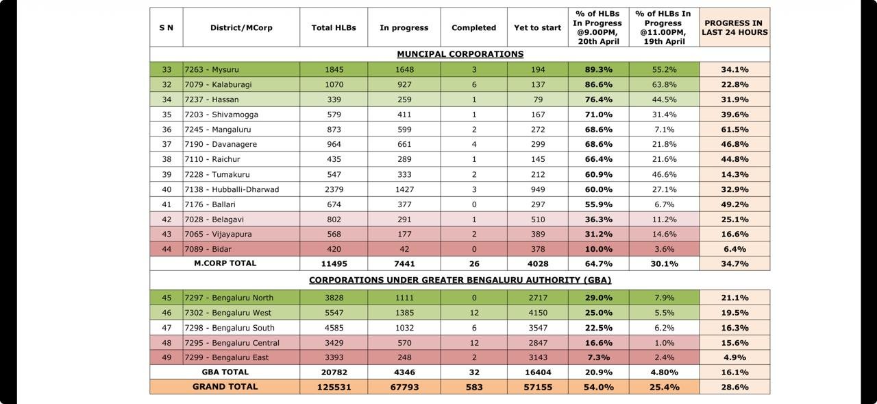 ಬೆಂಗಳೂರು : ಗ್ರೇಟರ್ ಬೆಂಗಳೂರು ಪ್ರಾಧಿಕಾರ (ಜಿಬಿಎ) ವ್ಯಾಪ್ತಿಯಲ್ಲಿ ನಡೆಯುತ್ತಿರುವ ಜನಗಣತಿ ಕಾರ್ಯದ ಪ್ರಗತಿ ನಿರೀಕ್ಷಿತ ಮಟ್ಟಕ್ಕೆ ತಲುಪದೇ ನಿಧಾನಗತಿಯಲ್ಲಿರುವುದು ಗಮನಕ್ಕೆ ಬಂದಿದೆ. ಈ ಕಾರ್ಯಕ್ಕೆ ಒಟ್ಟು 23,500 ಗಣತಿಗಾರರು ಹಾಗೂ 2,900 ಮೇಲ್ವಿಚಾರಕರು ನಿಯೋಜಿತರಾಗಿದ್ದರೂ, ಸುಮಾರು 6,000 ಸಿಬ್ಬಂದಿ ಅನುಮತಿಯಿಲ್ಲದೆ ಗೈರಾಗಿರುವುದು ಅಧಿಕಾರಿಗಳ ಆತಂಕಕ್ಕೆ ಕಾರಣವಾಗಿದೆ.