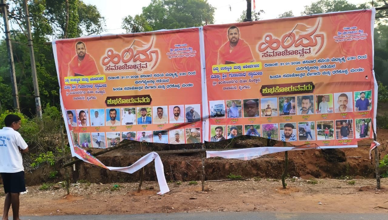 ಚಿಕ್ಕಮಗಳೂರು: ಹಿಂದು ಸಮಾಜೋತ್ಸವಕ್ಕೆ ಸಂಬಂಧಿಸಿದ ಬ್ಯಾನರ್ ಹಾಗೂ ಕೇಸರಿ ಬಾವುಟಗಳನ್ನು ಕಿಡಿಗೇಡಿಗಳು ಹರಿದು ಹಾಕಿರುವ ಘಟನೆ ಚಿಕ್ಕಮಗಳೂರು ಜಿಲ್ಲೆಯ ಶೃಂಗೇರಿ ತಾಲೂಕಿನಲ್ಲಿ ನಡೆದಿದೆ.