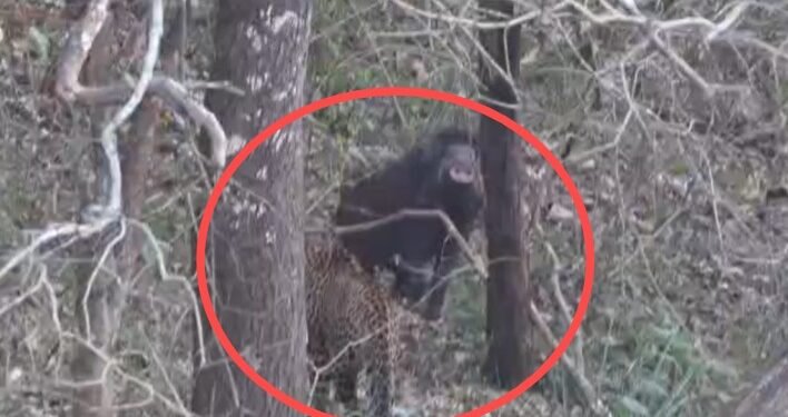ಚಿಕ್ಕಮಗಳೂರು: ಚಿಕ್ಕಮಗಳೂರು ಜಿಲ್ಲೆಯ ಭದ್ರಾ ಅಭಯಾರಣ್ಯದ ಲಕ್ಕವಳ್ಳಿ ವಿಭಾಗದಲ್ಲಿ ರೋಚಕ ಘಟನೆ ನಡೆದಿದೆ. ಬೇಟೆಗೆ ಹೊಂಚು ಹಾಕಿದ್ದ ಎರಡು ಚಿರತೆಗಳಿಗೆ ಕಾಡುಹಂದಿ ಚಳ್ಳೆಹಣ್ಣು ತಿನ್ನಿಸಿ ಕೊನೆಗೆ ಗುದ್ದಿ ಎಸ್ಕೇಪ್ ಆಗಿರುವ ಅಪರೂಪದ ದೃಶ್ಯ ಪ್ರವಾಸಿಗರ ಮೊಬೈಲ್ನಲ್ಲಿ ಸೆರೆಯಾಗಿದೆ.