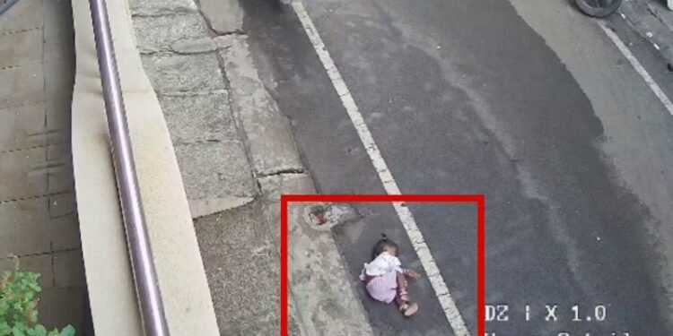 ಏಪ್ರಿಲ್ 6ರಂದು ನಡೆದ ಈ ಘಟನೆ ಸಿಸಿಟಿವಿ ಕ್ಯಾಮೆರಾದಲ್ಲಿ ಸೆರೆಯಾಗಿದ್ದು, ಮಗು ಕೆಳಗೆ ಬೀಳುವ ದೃಶ್ಯ ಕಂಡವರಿಗೆ ನಡುಕ ಮೂಡಿಸುವಂತಿದೆ. ಕೆಳಗೆ ಬಿದ್ದ ತಕ್ಷಣ ಮಗುವಿನ ತಲೆಗೆ ತೀವ್ರ ಪೆಟ್ಟಾಗಿ ರಕ್ತಸ್ರಾವ ಉಂಟಾಗಿದೆ. ಘಟನೆ ತಿಳಿದು ತಾಯಿ ತಕ್ಷಣ ಕೆಳಗೆ ಓಡಿ ಬಂದಿದ್ದು, ಮಗುವಿನ ಸ್ಥಿತಿ ನೋಡಿ ರಸ್ತೆ ಮಧ್ಯೆಯೇ ಮೂರ್ಛೆ ಹೋಗಿದ್ದಾರೆ. ಬಳಿಕ ಕುಟುಂಬದವರು ಮಗುವನ್ನು ಹತ್ತಿರದ ಖಾಸಗಿ ಆಸ್ಪತ್ರೆಗೆ ದಾಖಲಿಸಿದ್ದಾರೆ.