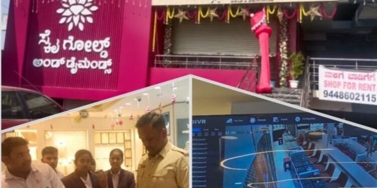 ಬೈಕ್‌ಗಳಲ್ಲಿ ಬಂದಿದ್ದ ಈ ಐದಕ್ಕೂ ಹೆಚ್ಚು ದರೋಡೆಕೋರರು ಅಂಗಡಿಗೆ ನುಗ್ಗಿ ಸಿಬ್ಬಂದಿಯನ್ನು ಗನ್​​​ನಿಂದ ಹೆದರಿಸಿ, ಚೀಲದಲ್ಲಿ ಚಿನ್ನಾಭರಣಗಳನ್ನು ದೋಚಿಕೊಂಡು ಎಸ್ಕೇಪ್‌ ಆಗಿದ್ದಾರೆ.