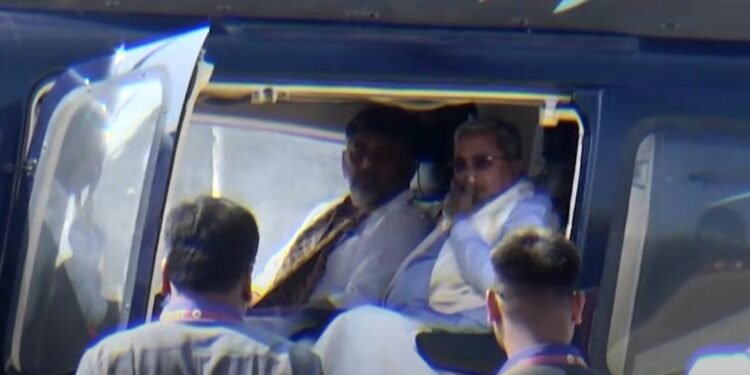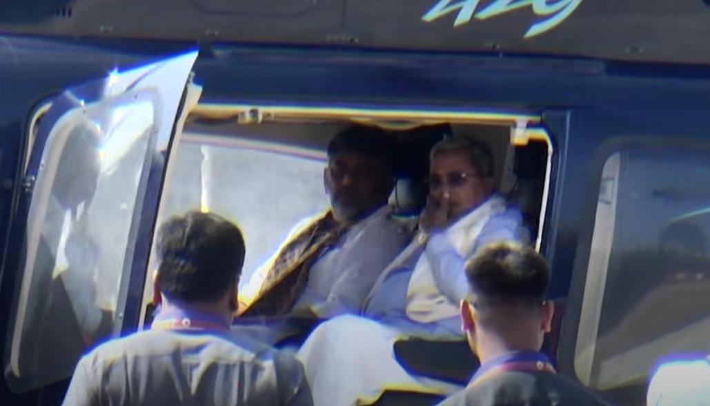 ದಾವಣಗೆರೆ | ಸಿಎಂ ಕುರ್ಚಿ ವಿಚಾರವಾಗಿ ರಾಜ್ಯ ಕಾಂಗ್ರೆಸ್ನಲ್ಲಿ ಬಣ ಬಡಿದಾಟದ ನಡುವೆಯೂ ಸಿಎಂ ಸಿದ್ದರಾಮಯ್ಯ ಮತ್ತು ಉಪಮುಖ್ಯಮಂತ್ರಿ ಡಿ.ಕೆ. ಶಿವಕುಮಾರ್ ದಾವಣಗೆರೆಗೆ ಒಂದೇ ಹೆಲಿಕಾಪ್ಟರ್ನಲ್ಲಿ ಜಂಟಿಯಾಗಿ ಪ್ರಯಾಣಿಸಿದ್ದಾರೆ.