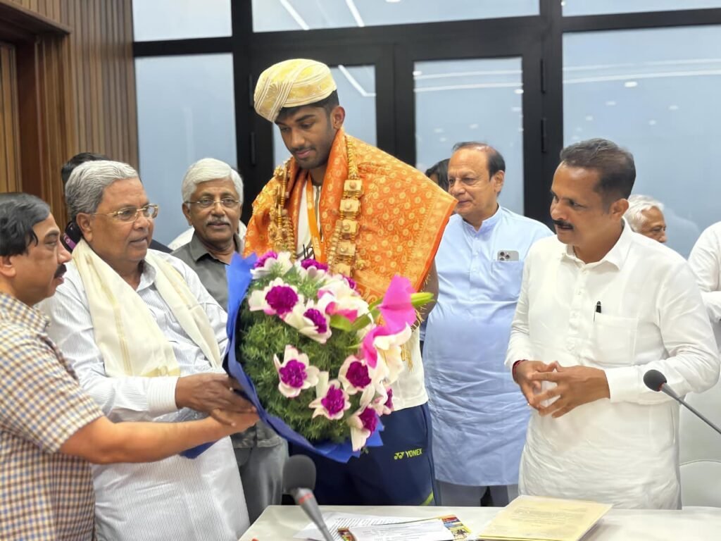 ಉಡುಪಿ: ಬ್ಯಾಡ್ಮಿಂಟನ್ ಏಷ್ಯಾ ಚಾಂಪಿಯನ್ ಶಿಪ್ನಲ್ಲಿ ಬೆಳ್ಳಿ ಪದಕ ಗೆದ್ದು ದೇಶಕ್ಕೆ ಕೀರ್ತಿ ತಂದ ಕಾರ್ಕಳದ ಆಯುಷ್ ಶೆಟ್ಟಿ ಅವರನ್ನು ಮುಖ್ಯಮಂತ್ರಿ ಸಿದ್ದರಾಮಯ್ಯ ಅವರು ಎ.16ರಂದು ವಿಧಾನಸೌಧದ ಸಿಎಂ ಕಚೇರಿಯಲ್ಲಿ ಸನ್ಮಾನ ಮಾಡಿದ್ದಾರೆ.