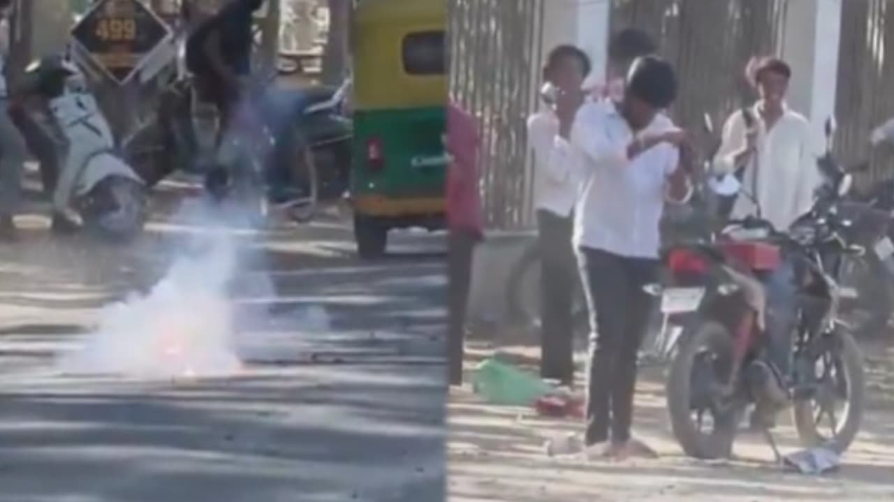 ಬರ್ತ್‌ಡೇ ಸೆಲೆಬ್ರೇಷನ್‌ : ಹಾಡಹಗಲೇ ನಡುರಸ್ತೆಯಲ್ಲಿ ಪಟಾಕಿ ಸಿಡಿಸಿ ಕಾಲೇಜು ವಿದ್ಯಾರ್ಥಿಗಳ ಹುಚ್ಚಾಟ