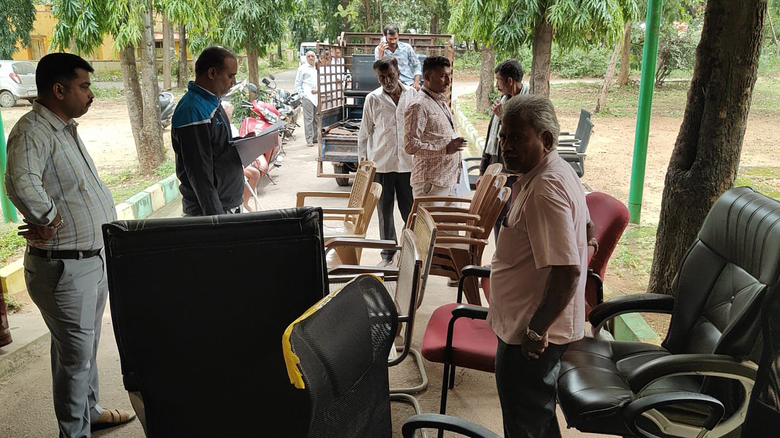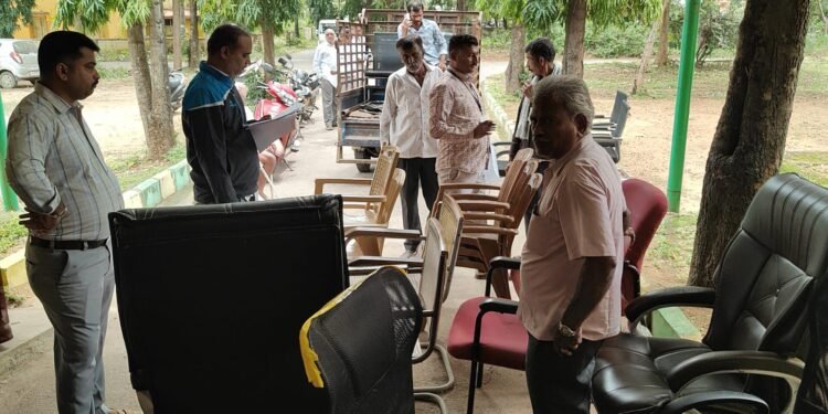 ಪಟ್ಟಣದ ಹೇಮಾವತಿ ಜಲಾಶಯ ಯೋಜನೆ ನ-03 ವಿಭಾಗ ಕಚೇರಿಯ AE ಕಚೇರಿ ಜಪ್ತಿಯಾಗಿದ್ದು, ಆದೇಶದೊಂದಿಗೆ ಕಳ್ಳನಕೆರೆ ಹಾಗು ಗಂಗನಹಳ್ಳಿ ಗ್ರಾಮದ ರೈತರು ಸ್ಥಳಕ್ಕೆ ಬಂದಿದ್ದು, ಆದೇಶ ಪ್ರತಿ ತೋರಿಸಿ ಕಚೇರಿಯಲ್ಲಿದ್ದ ಪೀಠೋಪಕರಣವನ್ನು ವಾಹನದಲ್ಲಿ ಹೊತ್ತೋಯ್ದಿದ್ದಾರೆ.