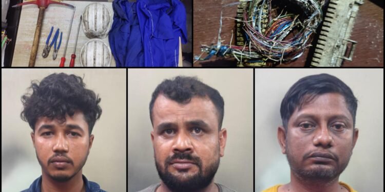 ಬೆಂಗಳೂರು : ಕಾಪರ್ ವೈರ್ ಕಳ್ಳತನ ಮಾಡಲು ವಿಮಾನದಲ್ಲಿ ಬಂದು, ಬಳಿಕ ರೈಲಿನಲ್ಲಿ ಪರಾರಿಯಾಗುತ್ತಿದ್ದ ಖತರ್ನಾಕ್ ಗ್ಯಾಂಗ್ ಅನ್ನು ಯಶವಂತಪುರ ಪೊಲೀಸರು ಬಂಧಿಸಿದ್ದಾರೆ. ಬಂಧಿತ ಆರೋಪಿಗಳನ್ನು ರವಿ ಚವ್ಹಾಣ್, ಸಂದೀಪ್ ಮತ್ತು ಸೈಯದ್ ಜಾಹೇದ್ ಎಂದು ಗುರುತಿಸಲಾಗಿದೆ. ಇವರು ಉತ್ತರ ಪ್ರದೇಶ ಮೂಲದವರಾಗಿದ್ದಾರೆ.
