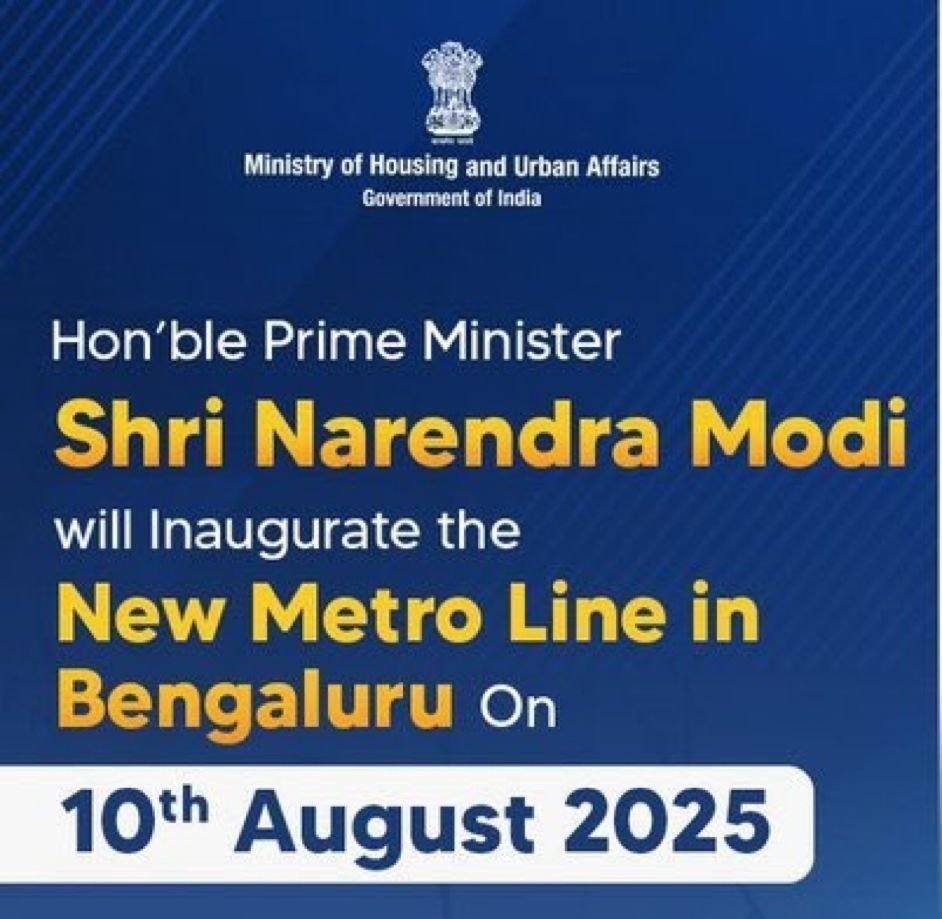 ಬೆಂಗಳೂರು : ಮೆಟ್ರೋ ಹಳದಿ ಮಾರ್ಗ ಉದ್ಘಾಟನೆಗೆ ಕ್ಷಣಗಣನೆ ಆರಂಭವಾಗಿದೆ.
