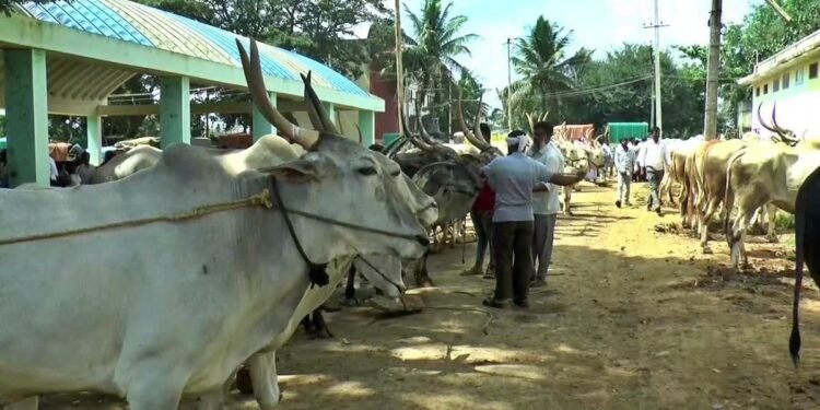ಹಾವೇರಿ : ಬಹುತೇಕ ರೈತರು ಹಿಂಗಾರು ಬಿತ್ತನೆಯಲ್ಲಿ ನಿರತರಾಗಿದ್ದಾರೆ. ಕೆಲ ರೈತರು ಹಿಂಗಾರು ಬಿತ್ತನೆ ಮುಗಿಸಿದ್ದು, ತಾವು ಸಾಕಿದ್ದ ಎತ್ತುಗಳ ಮಾರಾಟಕ್ಕೆ ಮುಂದಾಗಿದ್ದಾರೆ. ಹೀಗಾಗಿ, ಮಾರುಕಟ್ಟೆಯಲ್ಲಿ ರೈತರ ಎತ್ತುಗಳು ಹೆಚ್ಚಿನ ಸಂಖ್ಯೆಯಲ್ಲಿ ಕಾಣಸಿಗುತ್ತಿವೆ.