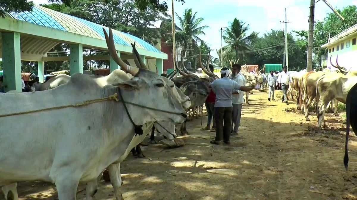 ಹಾವೇರಿ : ಬಹುತೇಕ ರೈತರು ಹಿಂಗಾರು ಬಿತ್ತನೆಯಲ್ಲಿ ನಿರತರಾಗಿದ್ದಾರೆ. ಕೆಲ ರೈತರು ಹಿಂಗಾರು ಬಿತ್ತನೆ ಮುಗಿಸಿದ್ದು, ತಾವು ಸಾಕಿದ್ದ ಎತ್ತುಗಳ ಮಾರಾಟಕ್ಕೆ ಮುಂದಾಗಿದ್ದಾರೆ. ಹೀಗಾಗಿ, ಮಾರುಕಟ್ಟೆಯಲ್ಲಿ ರೈತರ ಎತ್ತುಗಳು ಹೆಚ್ಚಿನ ಸಂಖ್ಯೆಯಲ್ಲಿ ಕಾಣಸಿಗುತ್ತಿವೆ.